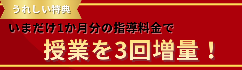 期間:12/1〜1/31/対象:小1〜中3(一般生OK)/今だけ授業+3回増量の特典付き!