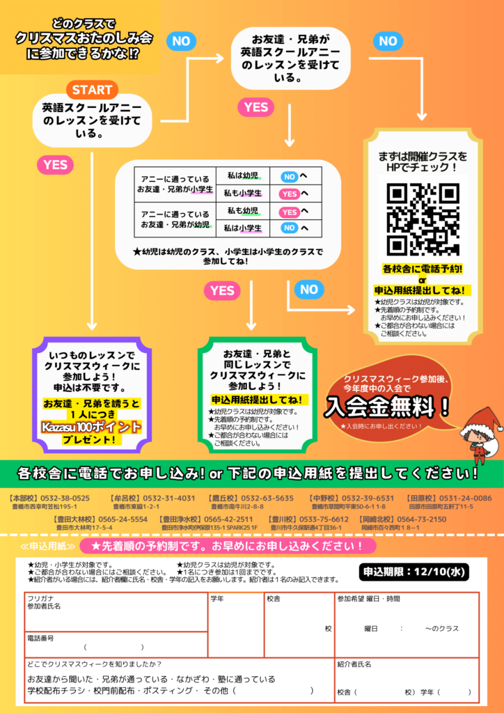 英語スクールアニーのクリスマスに遊びに来ませんか?