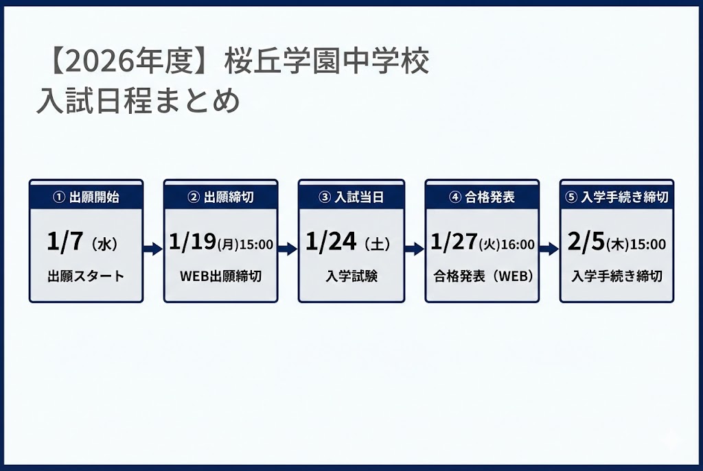 この記事では、2026年度 桜丘学園中学校入試について、出願から試験内容、合格発表・入学手続きまでを分かりやすくまとめました。